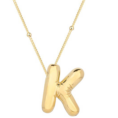 Silver Gold Balloon Letter K Women's Necklace With silver letter necklaces, those who are precious to you are always with you... Adorn your loved one's neck with love with this special necklace model that young lovers can choose on special occasions. A silver letter necklace that your loved ones will wear with pleasure will be one of the most meaningful gifts. The balloon letter women's necklace model is made of 925 sterling silver. Gold plated on silver. Gold plated silver women's necklace models preserve their shine for a long time. The ball chain that comes with the necklace is completely silver and is 45 cm long. Like all of our products, the silver women's letter necklace model is produced by hand. Due to silver and precious stones, there may be a ± 10% deviation in the average product weight. Necklace Width: 1.80 cm Necklace Length: 1.90 cm Necklace Thickness: 0.70 cm Average Weight: 6.50 gr