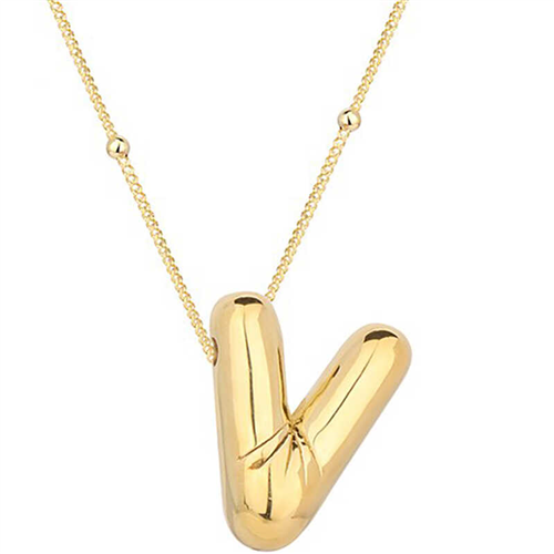 Silver Gold Balloon V Letter Women's Necklace With silver letter necklaces, those who are precious to you are always with you... Adorn your loved one's neck with love with this special necklace model that young lovers can choose on special occasions. A silver letter necklace that your loved ones will wear with pleasure will be one of the most meaningful gifts. The balloon letter women's necklace model is made of 925 sterling silver. Gold plated on silver. Gold plated silver women's necklace models preserve their shine for a long time. The ball chain that comes with the necklace is completely silver and is 45 cm long. Like all of our products, the silver women's letter necklace model is produced by hand. Due to silver and precious stones, there may be a ± 10% deviation in the average product weight. Necklace Width: 1.80 cm Necklace Length: 1.90 cm Necklace Thickness: 0.70 cm Average Weight: 6.50 gr