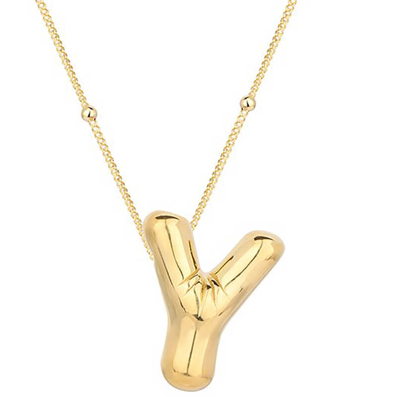 Silver Gold Balloon Letter Y Women's Necklace With silver letter necklaces, those who are precious to you are always with you... Adorn your loved one's neck with love with this special necklace model that young lovers can choose on special occasions. A silver letter necklace that your loved ones will wear with pleasure will be one of the most meaningful gifts. The balloon letter women's necklace model is made of 925 sterling silver. Gold plated on silver. Gold plated silver women's necklace models preserve their shine for a long time. The ball chain that comes with the necklace is completely silver and is 45 cm long. Like all of our products, the silver women's letter necklace model is produced by hand. Due to silver and precious stones, there may be a ± 10% deviation in the average product weight. Necklace Width: 1.80 cm Necklace Length: 1.90 cm Necklace Thickness: 0.70 cm Average Weight: 6.50 gr