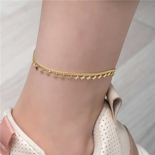 Silver Gold Butterfly AnkletWhile women are often thought of when jewelry is mentioned, it has influenced both men and women throughout history. Women wear jewelry to appear more elegant and attractive, while men wear it for style. Jewelry not only represents social status, personality, beliefs, and identity, but also serves various functions. In Anatolia, women working in vineyards, gardens, and fields could easily locate their young children by the sound they made from anklets. The sound they made was also used to deter poisonous animals like snakes and scorpions. Today, they are worn by women who want to look elegant and stylish. Don't deprive your wrists of this elegance, visit our anklet section, and choose your favorite model. The butterfly anklet is made of 925 sterling silver. Gold-plated anklets for women preserve their shine for a long time, transform silver into gold, and delay oxidation. All of our products are handcrafted. Due to silver and precious stones, there may be a ± 10% deviation in product weight.Butterfly Width: 0.40 cmButterfly Length: 0.30 cmAnklet Chain Length: 27 cmAverage Weight: 4.20 gr.