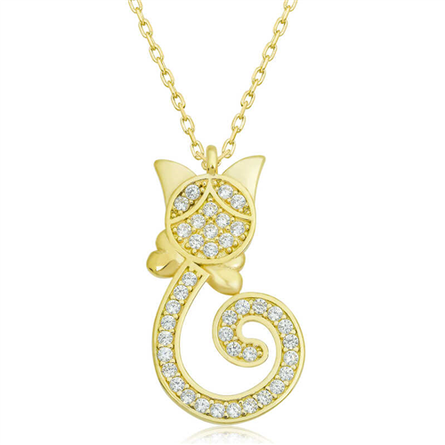 Silver Gold Cat Woman Necklace Cats, the adorable source of joy in our homes, are not only clean but also a symbol of innocence. They have a noble and logical personality, excellent intuition and rational sensitivity. Silver jewelry, one of the most preferred gift options for special occasions, is designed for those who want to make their loved ones happy and give them a gift they can carry with them at all times. You can gift the cat-figured silver necklace, the symbol of innocence, to your sister, lover or friends. The zircon cat woman necklace is made of 925 sterling silver. Gold-plated silver. Gold-plated silver cat necklace models preserve their shine for a long time and oxidation is delayed. All stones on the necklace are zircon. The average silver chain length is 45 cm. The silver women's cat necklace is produced by hand, like all other silver women's necklace models. Due to silver and precious stones, there may be ± 10% deviation in the average product weight. Width: 1.20 cm Height: 2.30 cm Weight: 2.30 gr.