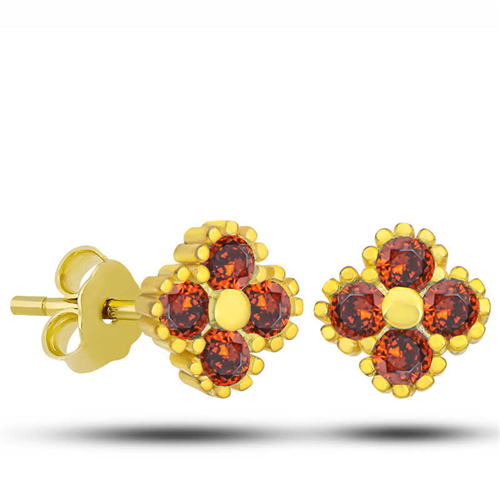 Silver Gold Clover Studded Red Stone Children's EarringsWe offer ornate and stylish earring models for princesses who have become interested in jewelry from a young age. With our silver children's models, we have many gift ideas and options on our site for newborns, birthdays and special occasions, so you can find whatever you are looking for in jewelry for children. Children's jewelry usually attracts the attention of mothers and close relatives for some reason. You can find and easily purchase products for little princes and princesses in many categories, such as silver children's and baby earrings, children's sets, baby pins, and girls' and boys' tags. Silver is gold-plated. Gold-plated silver children's earrings preserve their shine for a long time. All of our products are handmade. Due to silver and precious stones, there may be a ± 10% deviation in product weight.Width: 0.60 cmLength: 1.20 cmWeight: 1.50 gr.