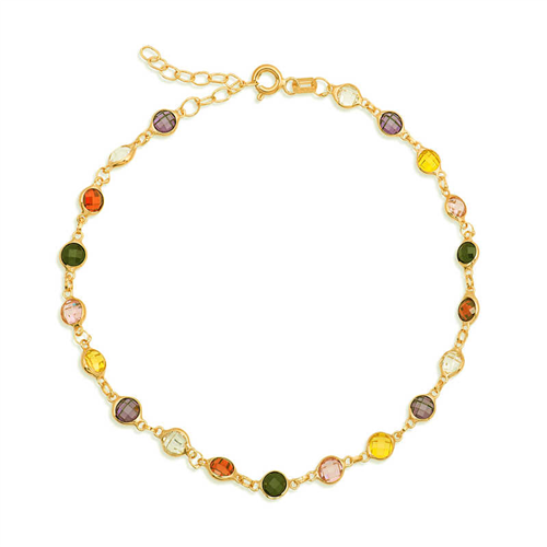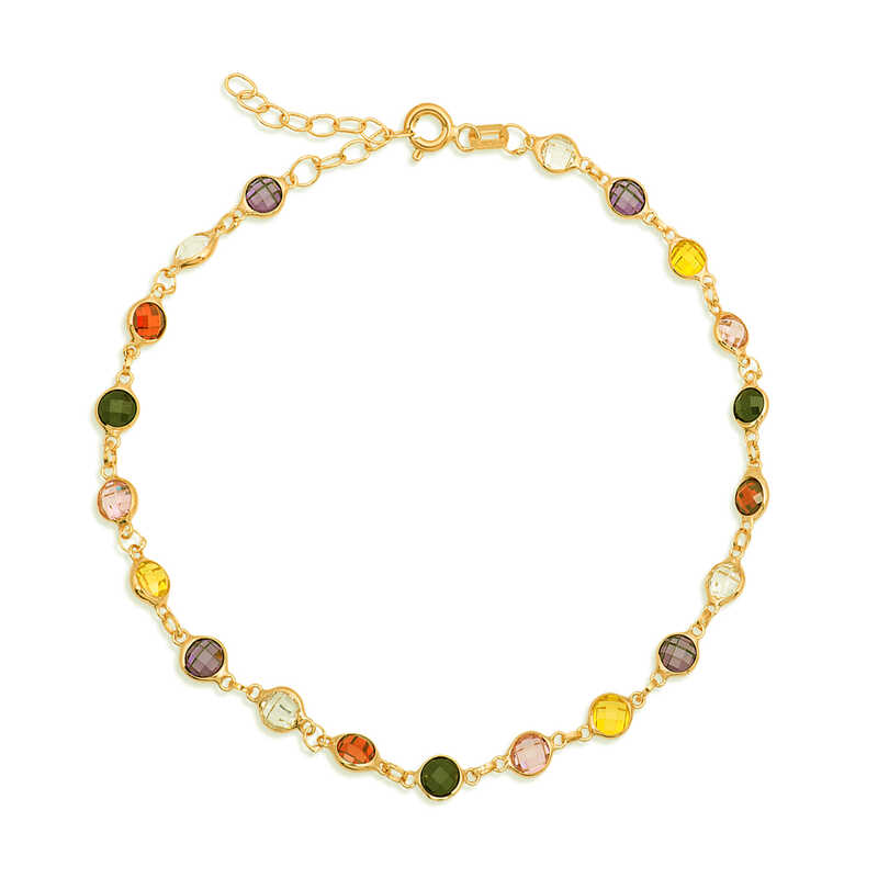Silver Gold Colored Stone Women's Anklet Anklets with colored stones, which stand out among the popular jewelry of recent times, are frequently preferred especially in the summer months. Jewelry enriched with different elegant nuances, leave an extremely noble and stylish stance on your wrist. Anklets that can be used with both evening and daily outfits help complete your elegance. The colored stone anklet trend ensures that your noble stance is noticed on special occasions. To add a brand new touch to your jewelry style or to offer your loved ones an unforgettable gift, you can make a nice selection by taking a look at our innovative anklet models. The product will be sent in a gift box. This anklet is gold-plated. Gold-plated products preserve their shine for a long time and delay oxidation. All of our products are handmade. Due to silver and precious stones, there may be a ± 10% deviation in product weight. Width: 0.40 mm Anklet Length: 27.00 cm Average Weight: 4.00 gr.