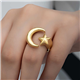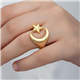 Silver Gold Crescent Star Women's RingWe know that the Turkish flag is inspired by the crescent and star reflected in a lake of blood. We offer you an unmissable opportunity to carry the sacred meaning of the flag and share it with your loved ones. You can buy this stylish crescent star design women's ring for yourself or as a gift to your loved ones on your birthday, Mother's Day or special occasions. The crescent star women's ring model is made of 925 sterling silver. Gold plated on silver. Gold plated women's rings have an authentic look. Like all silver women's rings, the silver crescent star women's ring model is produced entirely by hand. Due to silver and precious stones, there may be ± 10% deviation from the average product weight.Width: 2.00 cmLength: 2.30 cmAvg. Weight: 8.40 gr.