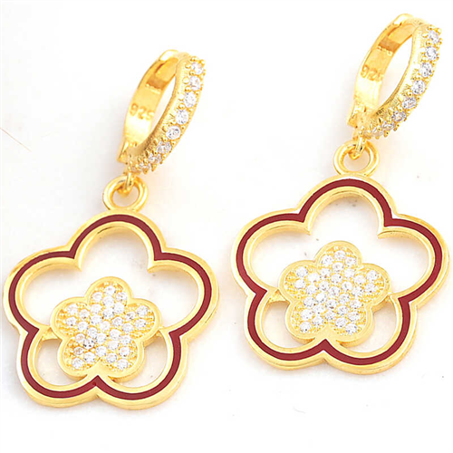 Silver Gold Dangling Flower Patterned Women's EarringsEarrings, which are among the top choices of women on special occasions, are the savior of many women. The floral patterned earrings that you can combine with any outfit, from sporty to classic, are here at a very affordable price. You can complete your elegance with this model supported by small white zircon stones embroidered on an elegant flower motif. This earring model is made of 925 sterling silver. Gold plated on silver. Gold plated silver earring models preserve their shine for a long time and oxidation is delayed. As with all silver earrings, the silver dangling flower patterned women's earring model is produced entirely by hand. There may be ± 10% deviation from the average product weight due to silver and precious stones.Width: 2.00 cm. Length: 2.30 cm. Average Weight: 5 gr.