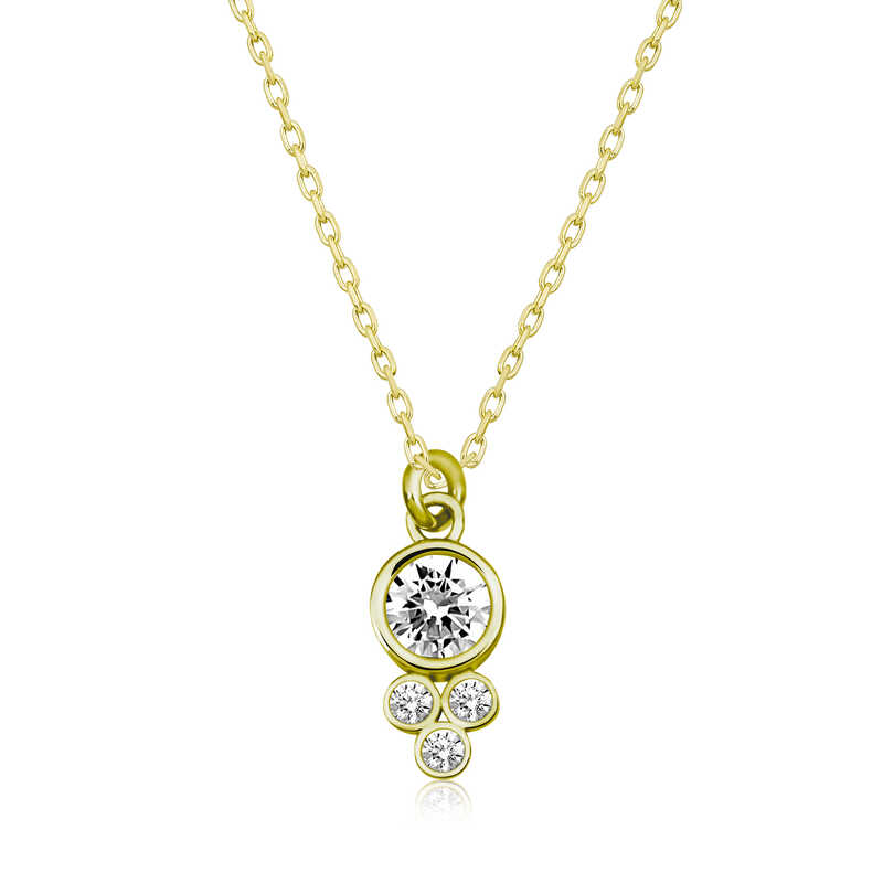Silver Gold Dew Drop Round Solitaire Women's Necklace This dew drop round solitaire necklace will suit those who want to be reminded of the stars with the dazzling shine of silver and zircon. Made of 925 sterling silver, this set is perfect for all combinations, from sporty to classic, that both you and your loved ones will enjoy wearing. The white stones on the necklace are zircon. Delight yourself and your loved ones with a stylish and sparkling round solitaire necklace. The silver dew drop round solitaire women's necklace is gold-plated. All gold-plated silver women's necklace models maintain their shine for a long time. The chain length of the necklace is 45 cm. As with all our silver women's necklace models, the silver dew drop round solitaire women's necklace is handmade. Due to silver and precious stones, there may be a ± 10% deviation from the average product weight. Width: 0.60 cm Length: 1.50 cm Average Weight: 2.40 gr.