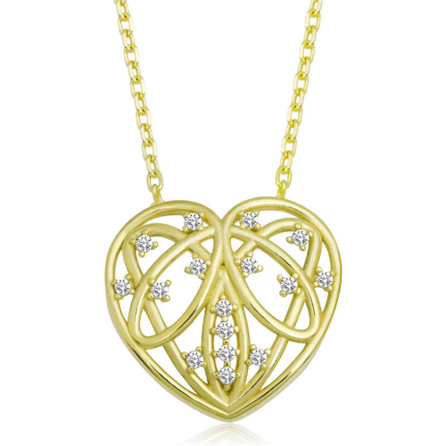 Silver Gold Domed Heart Women's Necklace The heart symbol has always been the symbol of unconditional love and passion. In religious teachings, the power of the heart is limitless. Because the heart is the house of the Creator and our gateway to reality that opens to the universe. This stylish silver domed heart women's necklace is a perfect option for a birthday gift, Valentine's Day gift or a gift for mothers on special occasions. The silver heart women's necklace is made of 925 sterling silver. This necklace is gold-plated. Gold-plated silver women's necklace models preserve their shine for a long time. The stones on it are zircon. As with all our silver women's necklace models, the silver domed heart women's necklace model is also handmade. Due to silver and precious stones, there may be ± 10% deviation in the average product weight. Width: 1.90 cm Height: 1.90 cm Avg. Weight: 4.25 gr. Chain Length: 45 cm