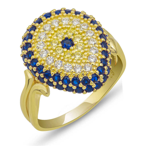 Silver Gold Drop Evil Eye Women's RingStylish designs suitable for all ages and lifestyles, a model that will accompany you at any moment of the day. The evil eye bead will add beauty to your beauty. It will also keep you away from evil eyes. This evil eye women's ring is made of 925 sterling silver. Gold plated silver. Gold plated silver women's ring models preserve their shine for a long time and oxidation is delayed. The stones on the ring are zircon. The silver drop evil eye women's ring is produced by hand like other women's ring models. Due to silver and precious stones, there may be a ± 10% deviation in the average product weight.Ring Width: 2.00 cmRing Length: 2.20 cm Average Weight: 4.30 gr.