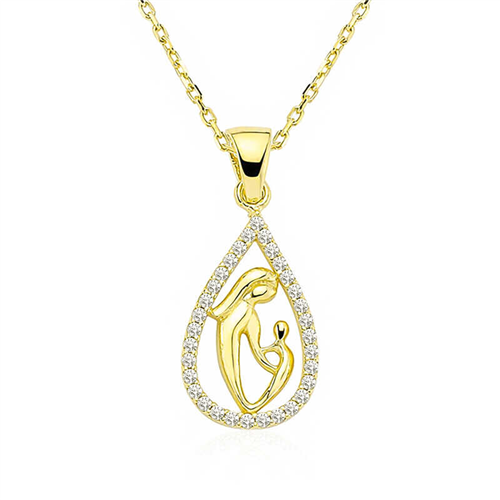 Silver Gold Drop Mother Child Necklace It is a special design that represents the love between a child and a mother. This mother child necklace will be one of the most appropriate gifts you can buy to show your devotion to your mother. This specially designed drop mother child necklace for your mother is made of 925 sterling silver. Gold plated silver. Gold plated silver mother child necklace models preserve their shine for a long time and oxidation is delayed. The stones on the necklace are zircon. The average silver chain length is 45 cm. The silver drop mother and child necklace is handmade. Due to silver and precious stones, there may be a ± 10% deviation in the average product weight. Necklace Width: 1.60 cm Necklace Length: 3.50 cm Average Weight: 4 gr