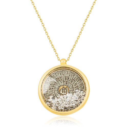 Silver Gold Esmaül Hüsna Women's Necklace Esmaül Hüsna is the name given to the ninety-nine names of Allah, which mean the most beautiful names. This wonderfully designed necklace, with Esmaül Hüsna written on it and zircon stones inside, is made of 925 sterling silver. Gold-plated silver. Gold-plated silver necklace models turn silver yellow. The chain that comes with the necklace is also silver and is 45 cm in length. This specially designed necklace is a perfect option as a birthday gift, Valentine's Day gift or a gift for mothers on special occasions. Like all our silver necklace models, the silver Esmaül Hüsna necklace model is handmade. Due to silver and precious stones, there may be a ± 10% deviation in the average product weight. Width: 2.00 cm Length: 2.00 cm Weight: 6.00 gr.