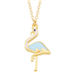 Silver Gold Flamingo Women's Necklace Flamingos, used in tattoos with the colors they carry due to their nature, are symbols of elegance and beauty. These meanings are common definitions for them, but they also mean spiritual guidance, freedom, love and nobility that their nature as birds brings. This makes them a stylish gift option. Gold plated on silver. Gold plated silver women's necklace models preserve their shine for a long time and oxidation is delayed. The chain that comes with the necklace is completely silver and is 45 cm long. Like all silver women's necklace models, the silver women's flamingo necklace model is entirely handmade. For this reason, there may be ± 10% deviation in the average product weight due to mines and precious stones. Width: 1.10 cm Height: 2.00 cm Average weight: 2.40 gr.