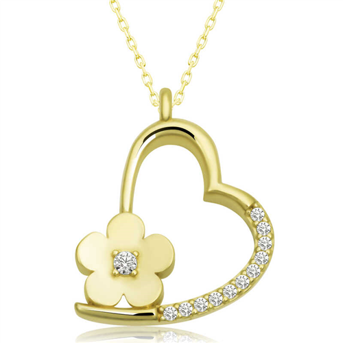 Silver Flower Heart Women's Necklace The heart symbol has always been the symbol of unconditional love and passion. In religious teachings, the power of the heart is limitless. Because the heart is the house of the Creator and our gateway to reality that opens to the universe. This stylish silver flower heart necklace is a perfect option for a birthday gift, Valentine's Day gift or a gift for mothers on special occasions. The silver flower heart women's necklace is made of 925 sterling silver. This necklace is gold-plated. Gold-plated silver women's necklace models preserve their shine for a long time. The stones on it are zircon. As with all our silver women's necklace models, the silver flower heart women's necklace model is also handmade. Due to silver and precious stones, there may be ± 10% deviation in the average product weight. Width: 1.70 cm Height: 1.90 cm Avg. Weight: 2.85 gr. Chain Length: 45 cm
