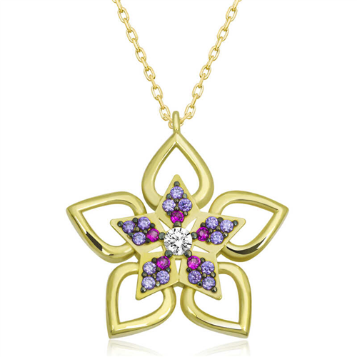 Silver Gold Flower Women's Necklace The most special and elegant way to express your feelings to your loved ones is to send them stylish, colorful and fragrant flowers. Flowers, which are among the gifts to be given on special occasions, have been designed with a different interpretation this time. The flower necklace is waiting for those who want to express their love once again, who want to say you are a flower. This specially designed flower women's necklace is made of 925 sterling silver. Gold plated silver. Gold plated silver women's necklace models preserve their shine for a long time and oxidation is delayed. The stones on the necklace are zircon. Like all women's silver necklace models, the silver flower women's necklace is produced by hand. Due to silver and precious stones, there may be a ± 10% deviation in the specified product weight. Width: 2.00 cm Length: 2.20 cm Average Weight: 2.70 Gr Chain Length: 45 cm