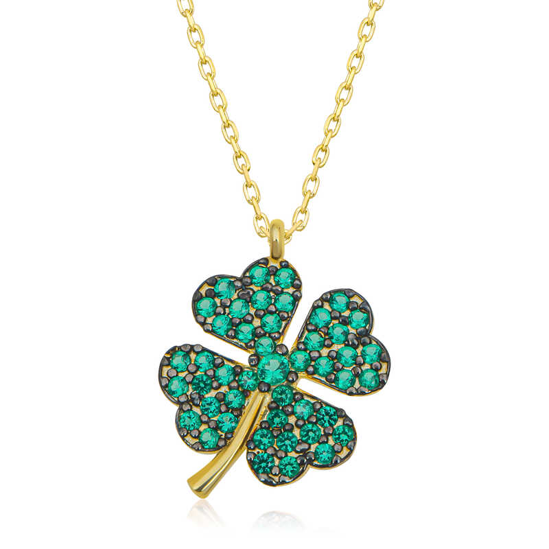 Silver Gold Four Leaf Clover Women's Necklace For years, it has been believed that four-leaf clovers bring luck, and many people use clover figurines just for this reason. Clover has dozens of benefits besides bringing luck. A person who wears a clover necklace will also carry luck and healing with them. The four-leaf clover is considered a symbol of good luck in all cultures. The first leaf symbolizes hope, the second symbolizes faith, the third symbolizes love, and the fourth leaf symbolizes luck. This fourth leaf is very rare in nature. The four-leaf clover women's necklace adorned with silver green zircon stones is a wonderful model that you can enjoy using and gifting to your loved ones. The silver green stone women's necklace is made of 925 sterling silver. The silver necklace is gold-plated. Gold-plated silver women's necklaces preserve their shine for a long time and oxidation is delayed. The average silver chain length is 45 cm. Like all our silver women's necklace models, the silver four-leaf clover women's necklace is also handmade. Due to silver and precious stones, there may be ± 10% deviation in product weight. Width: 1.40 cm. Length: 1.70 cm. Weight: 2.00 gr.