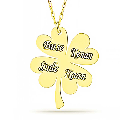 Silver Gold Four Leaf Named Clover Women's Necklace The four-leaf clover is considered a symbol of good luck in all cultures. Each of the four leaves of the clover has a different meaning. The first leaf symbolizes hope, the second symbolizes faith, the third symbolizes love, and the fourth leaf symbolizes luck. You can always carry your luck with you or gift good luck to your loved ones. This specially designed women's necklace model with a four-leaf name clover is made of 925 sterling silver. Let your names come to life on the skin of the woman you love with the silver women's four leaf name clover necklace. This special necklace model with a 45 cm long silver chain will be a very stylish option for young lovers on special occasions. Adorn your loved one's neck with love with this special necklace. The silver women's four leaf name clover necklace is gold-plated. Gold-plated silver women's necklace models preserve their shine for a long time. This specially designed named necklace will be one of the most beautiful gifts that your loved ones will enjoy wearing. Like all our silver women's necklace models, the silver women's four-leaf clover named necklace is also handmade. Due to silver and precious stones, there may be a ± 10% deviation in the specified product weight. Width: 2.70 cm Length: 3.10 cm Avg. Weight: 3.55 g Chain length: 45 cm