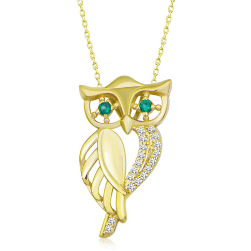 Silver Gold Green-Eyed Owl Women's Necklace The owl is a mythological animal with rich meanings in history and different cultures. The reason why owl accessories are so popular is because they have strong symbolic meanings. Thanks to its ability to see at night, it symbolically represents wisdom due to its strong intuitive powers. You can love this necklace in daily life and gift it to your loved ones on special occasions. This stylish design necklace is made of 925 sterling silver. Gold plated on silver. As with all silver products, the silver green-eyed owl women's necklace is entirely handmade. Due to silver and precious stones, there may be ± 10% deviation in the average product weight. Width: 1.40 cm Length: 2.50 cm Avg. Weight: 2.50 gr. Average Chain Length: 45 cm
