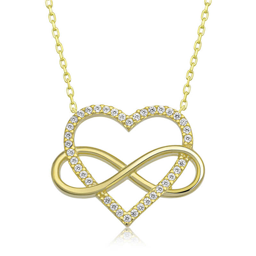 Silver Gold Heart Infinity Women's Necklace One of the most beautiful and meaningful ways to express your eternal love to your lover is with an infinity necklace. This women's necklace model, in which you can name your love that becomes eternal with the coming together of two hearts, is made of 925 sterling silver. With this special necklace that you will gift to your lover, you can express your eternal love and give the message that you will be together forever. The silver heart infinity women's necklace is gold-plated. Gold-plated silver women's necklace models preserve their shine for a long time and oxidation is delayed. The white stones on the necklace are zircon. The average silver chain length is 45 cm. The silver heart infinity women's necklace is handmade like all other silver infinity women's necklace models. Due to silver and precious stones, there may be ± 10% deviation in the specified product weight. Width: 2.00 cm Length: 1.60 cm Average Weight: 2.80 gr.
