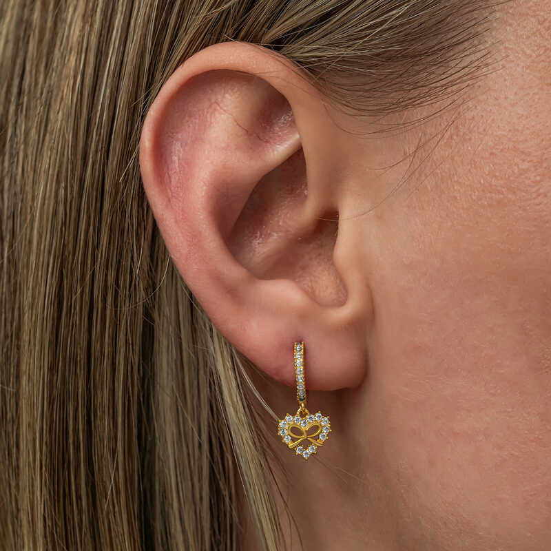 Silver Gold Heart Ribbon Dangle Women's EarringsAppealing to all women who want to create an elegant look, these timeless silver pearl stone earrings are waiting for you. How about adding sparkle to your surroundings with the dazzling sparkle of rhodium-plated silver, pearl and zircon stones... Pearl earrings, which both you and your loved ones will enjoy wearing, will also be one of the best gifts to share your love... Made of 925 sterling silver. Gold plating is done on silver. Gold-plated products preserve their shine for a long time and oxidation is delayed. All of our products are handmade. Due to silver and precious stones, there may be a ± 10% deviation in product weight.Width: 1 cmLength: 2 cmAverage Weight: 2.22 gr.
