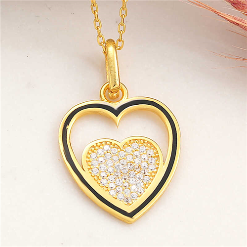 Silver Gold Heart Women's Necklace The heart symbol has always been the symbol of unconditional love and passion. In religious teachings, the power of the heart is limitless. Because the heart is the house of the Creator and our gateway to reality that opens to the universe. This stylish silver heart necklace is a perfect option for a birthday gift, Valentine's Day gift or a gift for mothers on special occasions. The silver heart women's necklace is made of 925 sterling silver. This necklace is gold-plated. Gold-plated silver women's necklace models preserve their shine for a long time. The stones on it are zircon. Like all our silver women's necklace models, the silver heart women's necklace model is handmade. Due to silver and precious stones, there may be a ± 10% deviation in the average product weight. Width: 1.80 cm Length: 2.20 cm Chain Length: 45 cm Avg. Weight: 3.50 gr.