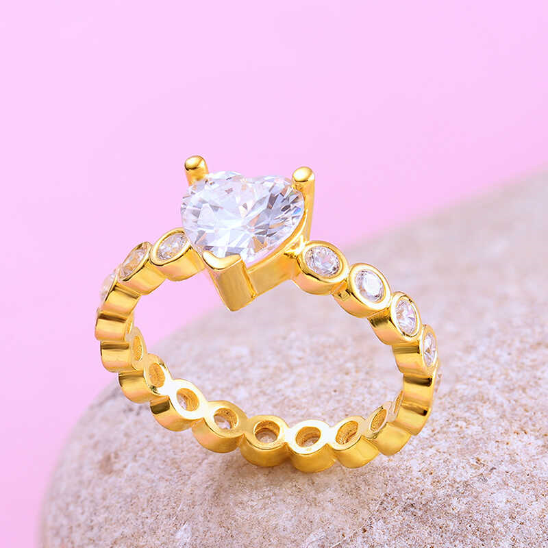 Silver Gold Heart Women's RingThe heart symbol has always been the symbol of unconditional love and passion. In religious teachings, the power of the heart is limitless. Because the heart is the house of the Creator and our gateway to reality, which opens to the universe. This stylish silver heart ring is a perfect option for a birthday gift, Valentine's Day gift or a gift for mothers on special occasions. The silver heart women's ring is made of 925 sterling silver. This ring is gold-plated. Gold-plated silver women's ring models preserve their shine for a long time. The stone on it is zircon. Like all our silver women's ring models, the silver heart women's ring model is handmade. Due to silver and precious stones, there may be a ± 10% deviation in the average product weight. Width: 2.00 cmLength: 2.30 cmAvg. Weight: 2.80 gr.