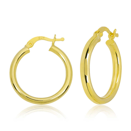 Silver Gold Hoop Women's Earrings You can use these stylish and sporty hoop earrings very easily in everyday life. Silver hoop women's earrings are a perfect option for a birthday gift, Valentine's Day gift or as a gift for mothers on special occasions. Silver hoop women's earrings are made of 925 sterling silver. Gold plated on silver. Gold plated silver hoop women's earrings preserve their shine for a long time and oxidation is delayed. Like all women's earrings, silver hoop women's earrings are handmade. Due to silver and precious stones, there may be ± 10% deviation from the average product weight. Earring Thickness: 0.30 cm Earring Diameter: 3.00 cm Average Weight: 5.00 gr.