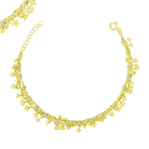Silver Gold Luck Women's BraceletIt is an ideal option for women who love a chic and fantasy look. In the collections; for women who pursue showiness and elegance, the bracelet featuring zircon stone stars, hearts and geometric shapes awaits you with models suitable for every taste and concept. You can choose this stylish model as a birthday gift or Valentine's Day gift on special occasions. Silver zircon stone luck women's bracelet is made of 925 sterling silver. Gold plated over silver. Gold plated silver women's bracelets preserve their shine for a long time and oxidation is delayed. The stone on it is zircon. Like all silver women's bracelets, this silver luck women's bracelet model is produced by hand. Due to silver and precious stones, there may be a ± 10% deviation in the average product weight.Width: 0.50 cmLength: 19.00 cmAverage Weight: 6.00 gr.