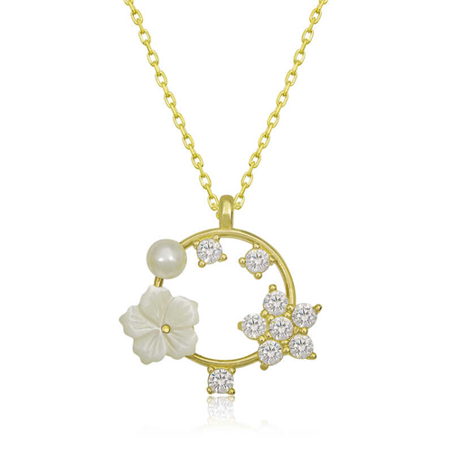 Silver Gold Magnolia Flower Star Women's Necklace The most special and elegant way to express your feelings to your loved ones is to send her stylish, colorful and fragrant flowers. Flowers, which are among the gifts to be given on special occasions, this time found meaning with a silver necklace. The silver flower women's necklace crafted with the highest quality, brightest, and most sparkling stones is waiting for those who want to express their love once again, for those who want to say "you are a flower." This specially designed silver magnolia flower star women's necklace is made of 925 sterling silver. Gold plated silver. Gold plated silver women's necklace models preserve their shine for a long time and oxidation is delayed. The white stone on the necklace is zircon. The average silver chain length is 45 cm. Like all women's silver necklace models, the silver magnolia flower women's necklace is also handmade. Due to silver and precious stones, there may be a ± 10% deviation in the specified product weight. Width: 1.80 cm Length: 2.00 cm Weight: 3.30 gr.