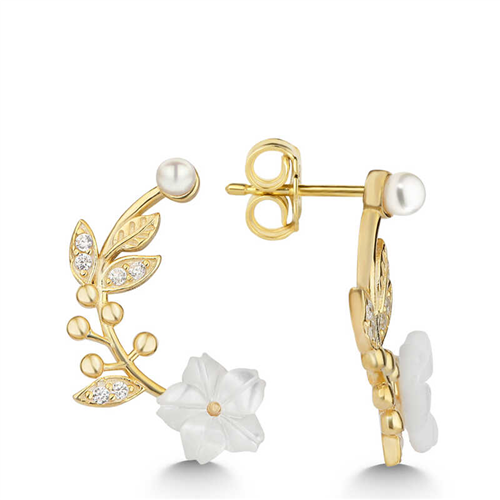 Silver Gold Mother-of-Pearl Flower Studded Women's Earrings You may want to send different gifts and flowers to your loved ones on their special days. You can also make your loved ones happy by making timeless surprises. Inspired by thousands of types of flowers in nature, the mother-of-pearl flower studded earring is a nice accessory that you can gift to your loved ones. This stylish earring is a perfect option for a birthday gift, Valentine's Day or special occasions. The earring is made of 925 sterling silver. Gold plated on silver. Like other earrings, the silver mother-of-pearl flower studded earring is also handmade. Due to silver and precious stones, there may be ± 10% deviation from the average product weight. Width: 1.70 cm Length: 2.30 cm Avg. Weight: 2.90 gr.