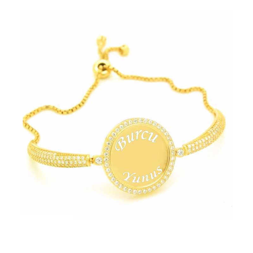Silver Gold Named Personalized Stone Women's BraceletLet your love come to life on the skin of the woman you love with the silver named personalized stone women's bracelet model, which expresses elegance with its round form pattern. Adorn your loved one's wrist with love with this named women's bracelet model, which can be chosen by young lovers and those who feel young on special occasions. This women's bracelet, which your loved ones will enjoy wearing as much as you, will be one of the best gifts for your loved one. This women's bracelet model is made of 925 sterling silver. Gold plated over silver. Gold plated silver women's bracelet models preserve their shine for a long time and oxidation is delayed. The white stones on the bracelet are zirconias. A personalized name can be engraved on the bracelet. Like all women's bracelet models, the silver named personalized women's bracelet model is also produced by hand. Due to silver and precious stones, there may be a ±10% deviation in the average product weight.Average Weight: 10.00 gr.