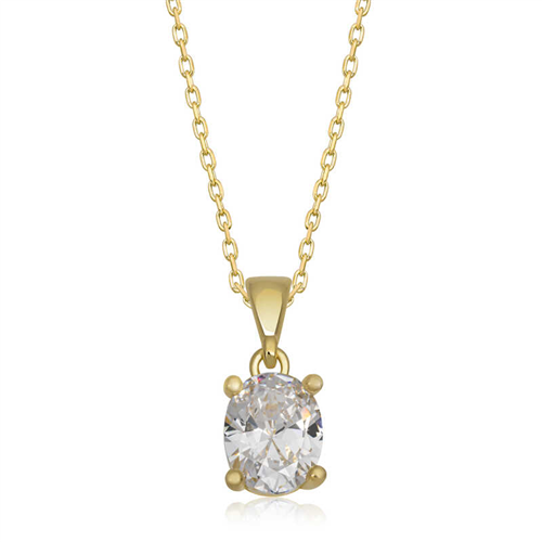 Silver Gold Oval Zircon Stone Women's Necklace This women's necklace model made of zircon stone on silver is a stylish accessory that you can use at any time of the day. You can gift this necklace to yourself or your loved ones on your birthday, Mother's Day or special occasions. Oval women's necklace model with zircon stone is made of 925 sterling silver. Gold plated silver. Gold plated silver women's necklace models preserve their shine for a long time. Like all women's necklaces, the silver zircon oval stone women's necklace model is also handmade. Due to silver and precious stones, there may be a ± 10% deviation in the average product weight. Width: 0.80 cm Length: 2.00 cm Average Weight: 3.80 gr.