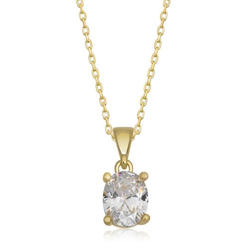 Silver Gold Oval Zircon Stone Women's Necklace This women's necklace model made of zircon stone on silver is a stylish accessory that you can use at any time of the day. You can gift this necklace to yourself or your loved ones on your birthday, Mother's Day or special occasions. Oval women's necklace model with zircon stone is made of 925 sterling silver. Gold plated silver. Gold plated silver women's necklace models preserve their shine for a long time. Like all women's necklaces, the silver zircon oval stone women's necklace model is also handmade. Due to silver and precious stones, there may be a ± 10% deviation in the average product weight. Width: 0.80 cm Length: 2.00 cm Average Weight: 3.80 gr.