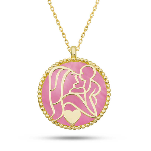 Silver Gold Pink Mother-Child Love Necklace It is a special design that represents the love between the child and the mother. This necklace expresses the feelings of love, devotion and compassion. One of the most suitable gifts you can buy to show your devotion to your mother will be this mother and baby necklace. This specially designed pink mother-child necklace designed for your mother is made of 925 sterling silver. Gold plating is made on silver. Gold-plated silver mother child necklace models preserve their shine for a long time and oxidation is delayed. The average silver chain length is 45 cm. The silver mother child necklace is produced by hand. Due to silver and precious stones, there may be ± 10% deviation from the average product weight. Width: 1.80 cm Length: 2.00 cm Average Weight: 2.90 gr. Chain Length: 45.00 cm