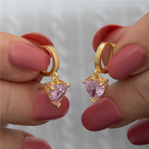 Silver Gold Pink Stone Heart Women's EarringsLet your love come to life on the skin of the woman you love with the heart necklace model that expresses love with its heart pattern. Adorn your loved one with love with these heart women's earrings that young lovers and those who feel young can choose on special occasions. Heart patterned earrings that both you and your loved ones will enjoy wearing will be one of the best gifts for your loved one. Heart women's earrings are made of 925 sterling silver. Gold plated on silver. Gold plated silver women's heart earrings preserve their shine for a long time and oxidation is delayed. The pink stone on the earring is zircon. Like all women's earrings, the silver pink stone heart women's earrings are produced by hand. Due to silver and precious stones, there may be a ± 10% deviation in the average product weight.Earring Width: 0.90 cmEarring Length: 2.40 cmAverage Weight: 4 gr