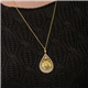 Silver Gold Plated Women's Necklace with Drop Tughra The tughra symbol, which was also used as a signature by the sultans in the Ottoman State and Empire, was combined with the drop necklace and became a necklace that expresses love with its meaning and its drop shape meaning half of the heart. Thus, you can delight your loved ones or yourself with this silver necklace, which has a religious and deep meaning. It is made of 925 sterling silver. Gold plated on silver. Gold plated silver women's necklace models preserve their shine for a long time and give the silver its golden color. The stones on it are zircon. The chain length is approximately 70 cm. All of our products are handmade. Due to silver and precious stones, there may be a ± 10% deviation in the average product weight. Width: 2.90 cm Length: 5.20 cm Chain Length: 70 cm Average Weight: 11.60 gr.