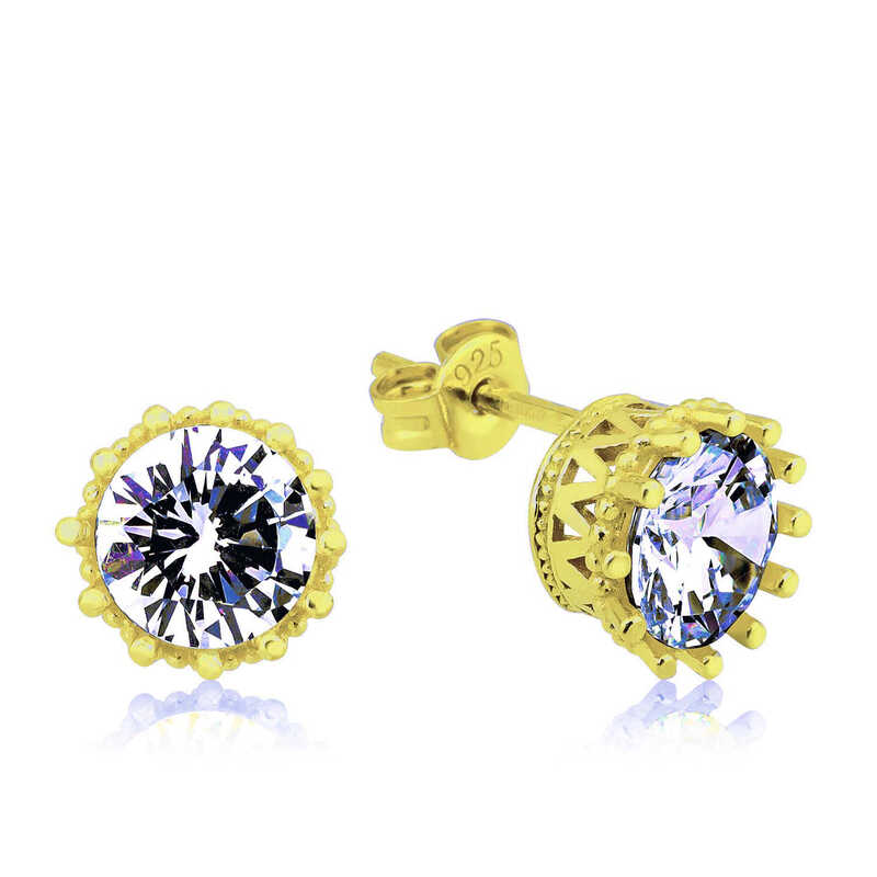 Silver Gold Prong Solitaire Studded Women's EarringsSolitaire earring models and sparkling options that reflect the infinite light of silver and zircon stone will add a unique light to your elegance. A wide range of stylish earring models, from modern to classic, have been prepared for you and your loved ones. The prong solitaire studded earring model is made of 925 sterling silver. There is gold plating on silver. Gold-plated silver earring models preserve their shine for a long time and turn the silver color into gold. As with all silver earring models, the silver prong solitaire earring model is produced by hand. There may be ± 10% deviation in the average product weight due to silver and precious stones. Width: 0.80 cmLength: 0.80 cm Avg. Weight: 2.25 gr.
