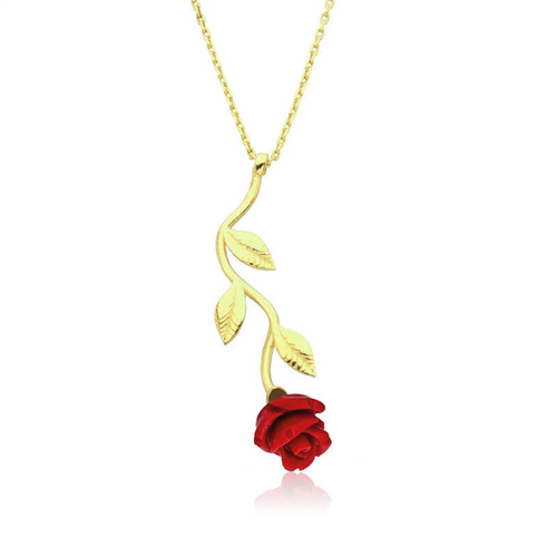 Silver Gold Red Rose Necklace Red roses have appeared in different cultures throughout history and carried religious or political symbols. The red rose has inspired poems and paintings throughout history. However, the red rose is the symbol of love and is best known for this. The red rose means love and loyalty. The meaning of a single red rose means “I love you”. You can gift a silver red rose necklace to your loved one to express your love and make them feel your love on their skin. This stylish necklace is a perfect option for a birthday gift, Valentine's Day or special occasions. The necklace is made of 925 sterling silver. Gold plating is applied to silver. Gold plating turns the silver into a yellow color. Like other necklaces, the silver red rose necklace is produced by hand. Due to silver and precious stones, there may be a ± 10% deviation in the average product weight. Width: 1.00 cm Length: 3.50 cm Average Weight: 2.00 gr.
