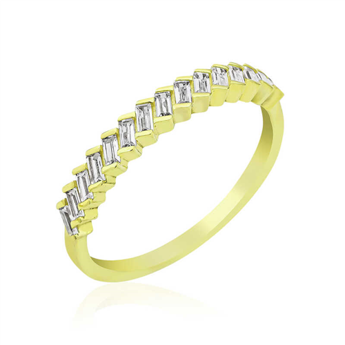 Silver Gold Row Baguette Stone Women's RingThis stylish ring model adorned with sparkling baguette stones is a very elegant option that you can choose on special occasions as a birthday gift, Valentine's Day gift or a gift for mothers. This half-tower shaped ring is made of 925 sterling silver. Gold plated on silver. Gold-plated silver rings turn their color to yellow and preserve their shine for a long time. The stones on it are baguettes. As with all women's silver rings, the silver row baguette stone women's ring model is also handmade. Due to silver and precious stones, there may be ± 10% deviation from the average product weight.Width: 0.30 cmLength: 2.00 cmAvg. Weight: 1.70 gr.