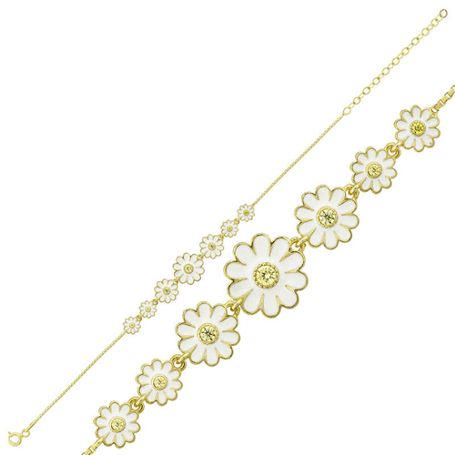 Silver Gold Row Daisy Women's Bracelet Daisy flower expresses the meaning of pure love. One of its most important features is that there is one on each stem. This sparkling necklace, designed with this beauty, is adorned with zircon stones. This stylish bracelet is a perfect option for a birthday gift, Valentine's Day gift or a gift for mothers on special occasions. Silver row daisy women's bracelet is made of 925 sterling silver. This bracelet is gold-plated. Gold-plated products preserve their shine for a long time. The stones on it are zircon. As with all silver women's bracelet models, the silver row daisy women's bracelet model is also handmade. The chain length of the bracelet is 21 cm. There may be ± 10% deviation in the average product weight due to silver and precious stones. Width: 1.10 cm Height: 1.10 cm Bracelet Length: 21 cm Average Weight: 3.25 gr.
