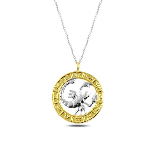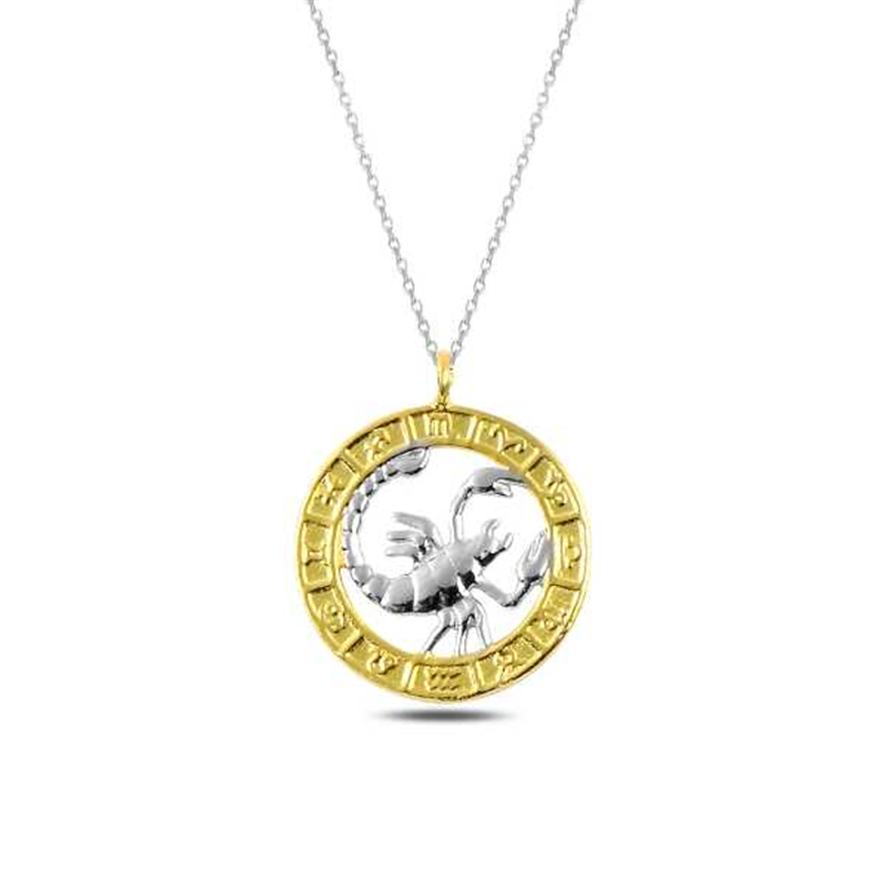 Silver Gold Scorpio Necklace We are introducing those who are closely interested in astrology to the most preferred zodiac collection this season. These stylish necklaces, which have become almost a mirror of modern style, were created with the reflection of the 12 constellations of the zodiac this season. 12 different necklace types, brought together with special designs that bring luck to each sign, will become the most assertive accessory pieces for those who believe in the power of astrology. You can pamper yourself or your loved ones with the necklace models in the zodiac collection, which are both stylish and special. Hurry up to meet the zodiac collection to meet the necklace models that help you express your wishes of trust and luck to your loved ones and that symbolize the best gift. Scorpio (Latin: Scorpio) is the zodiac sign that influences people born between October 23 and November 22. It is the name of one of the 12 parts that the Babylonians divided the sky into, considering it a circle. Scorpio necklace is made of 925 sterling silver. Gold plating is applied to the silver. Gold-plated silver necklaces preserve their shine for a long time and turn the silver yellow. As with all women's silver products, the silver gold Scorpio necklace is also handmade. Due to silver and precious stones, there may be a ±10% deviation from the average product weight. Width: 1.90 cm Length: 1.90 cm Average Weight: 3.00 gr.