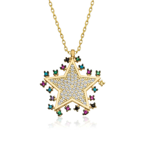 Silver Gold Shining Star Necklace The star is an auspicious symbol believed to bring luck in many societies and teachings. It carries the energy of the Planet Venus. The Planet Venus is also the representative of the energy of love and romance. This stylish necklace consisting of colorful stars is a perfect option for a birthday gift, Valentine's Day gift or for special occasions. Silver colored stars women's necklace is made of 925 sterling silver. This necklace is gold-plated. Gold-plated silver women's necklace models preserve their shine for a long time. As with all our silver women's necklace models, the silver gold shining star women's necklace model is also handmade. Due to silver and precious stones, there may be a ± 10% deviation in the average product weight. Width: 2.00 cm Length: 2.00 cm Average Weight: 3.00 gr. Chain Length: 45 cm