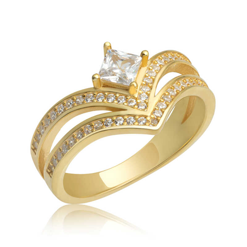 Silver Gold Solitaire Women's RingThis specially designed solitaire ring is made of 925 sterling silver. Gold plating is done on the silver. Gold-plated women's silver ring models preserve their shine for a long time and oxidation is delayed. The stones on the ring are zircon. It is a perfect gift option that you can give to your loved one on birthdays, Valentine's Day and special occasions. Like all of our silver women's ring models, this solitaire women's ring is also produced entirely by hand. Due to silver and precious stones, there may be a ± 10% deviation from the average product weight.Width: 2.10 cmLength: 2.30 cmAverage Weight: 4.00 gr.