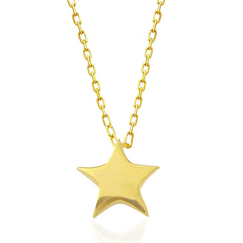Silver Gold Star Women's Necklace Silver star necklace models are among the most special jewelry items you can use at any time of the day. You can start accentuating your style with silver star necklaces, which can best reflect the shine of silver and stand out with their lightweight structure. The star women's necklace, preferred by women who are sensitive about their appearance and want to stand out with their style, is among the unique models that can adapt to the styles of young people and women who feel young. Star necklaces, which are among the timeless designs, allow you to revitalize your style in line with fashion. It is a perfect option for a birthday gift, Valentine's Day gift or on special occasions. Silver star women's necklace; Made of 925 sterling silver. Gold-plated silver necklace models preserve their shine for a long time and oxidation is delayed. Like all women's necklaces, this necklace model is produced by hand. Due to silver and precious stones, there may be a ± 10% deviation in the average product weight. Width: 0.90 cm Length: 0.80 cm Average Weight: 1.70 gr.