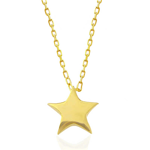Silver Gold Star Women's Necklace Silver star necklace models are among the most special jewelry items you can use at any time of the day. You can start accentuating your style with silver star necklaces, which can best reflect the shine of silver and stand out with their lightweight structure. The star women's necklace, preferred by women who are sensitive about their appearance and want to stand out with their style, is among the unique models that can adapt to the styles of young people and women who feel young. Star necklaces, which are among the timeless designs, allow you to revitalize your style in line with fashion. It is a perfect option for a birthday gift, Valentine's Day gift or on special occasions. Silver star women's necklace; Made of 925 sterling silver. Gold-plated silver necklace models preserve their shine for a long time and oxidation is delayed. Like all women's necklaces, this necklace model is produced by hand. Due to silver and precious stones, there may be a ± 10% deviation in the average product weight. Width: 0.90 cm Length: 0.80 cm Average Weight: 1.70 gr.