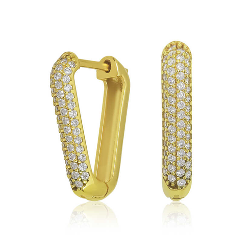Silver Gold White Stone Triangle EarringsYou will love using these earrings, which remind you of stars with their sparkling stones, in everyday life, special occasions and nights. These timeless silver earrings with stones are waiting for you, appealing to all women who want to create a stylish look. Silver white stone triangle earrings for women are a perfect option for a birthday gift, a Valentine's Day gift or a gift for mothers on special occasions. White stone triangle earrings are made of 925 sterling silver. Gold plated on silver. Gold plated silver white stone triangle earrings preserve their shine for a long time and oxidation is delayed. Like all women's earrings, the silver white stone triangle earring model is produced by hand. Due to silver and precious stones, there may be a ± 10% deviation in the average product weight.Earring Width: 1.40 cmEarring: Length: 1.90 cm Average Weight: 3.10 gr.