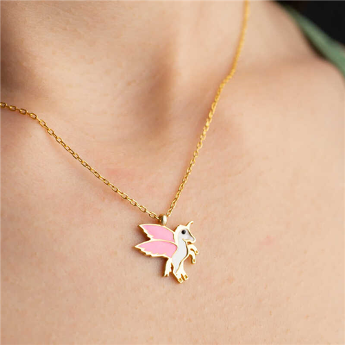 Silver Gold Winged Horse Necklace Horses have an extremely important place in Turkish culture; horses symbolize power and freedom. How about giving a meaningful gift with a horse necklace, which is a symbol of murat, for your loved ones, which will spark their success? This specially designed winged horse women's necklace will be one of those necklaces that you will not want to take off your neck. Made of 925 sterling silver, you can gift this specially designed necklace to those you love and value as a symbol of power and freedom. The silver winged horse women's necklace is gold-plated. Gold-plated silver necklace models preserve their shine for a long time. Like all silver necklace models, the silver winged horse women's necklace is produced by hand. Due to silver and precious stones, there may be a ± 10% deviation in the average product weight. Width: 1.40 cm Length: 1.50 cm Average Weight: 2.00 gr.