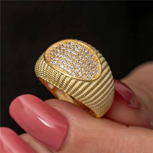 Silver Gold Zircon Stone Women's Ring With its elegance and grace, rings that women from all periods have loved wearing are designed for you and your loved ones. You can choose this perfect ring as a birthday gift, Valentine's Day gift or a gift for mothers on special occasions. This stylishly designed silver fantasy ring model is made of 925 sterling silver. It is made of zircon stones. Like all silver rings, the silver gold ring is also handmade. Due to silver and precious stones, there may be ± 10% deviation in the average product weight. This fantasy women's ring that will never go out of fashion is waiting for you, appealing to all women who want to achieve an elegant look. Width: 2.10 cm Length: 2.20 cm Avg. Weight: 4.50 gr.