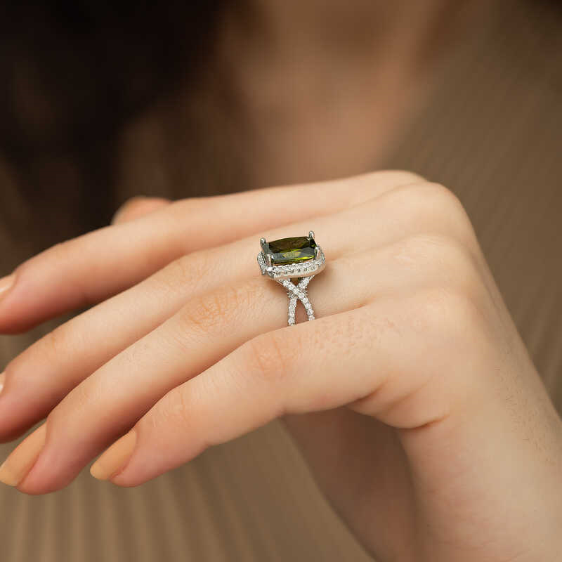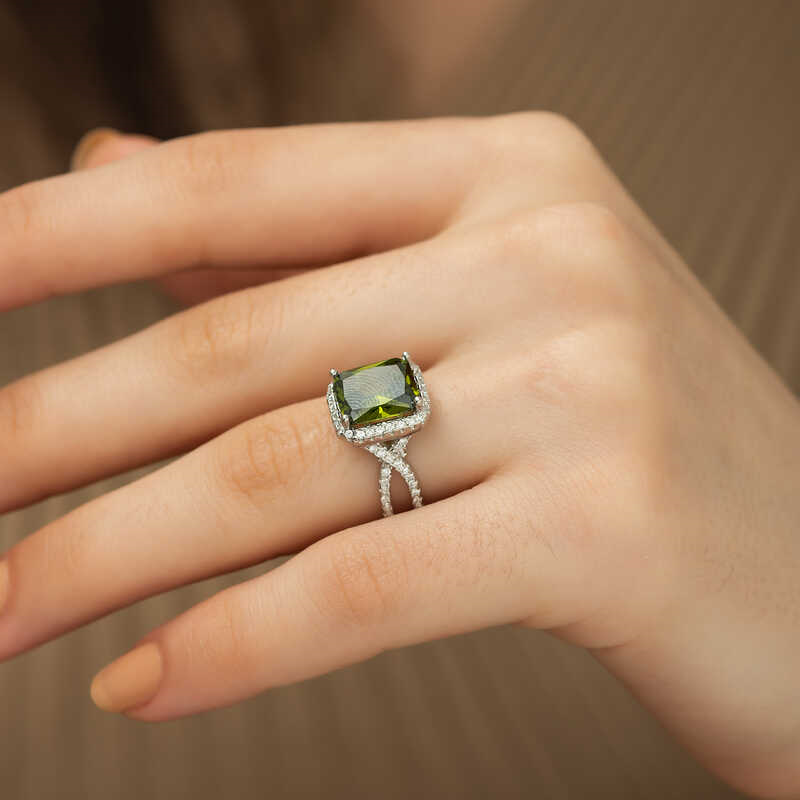 Silver Green Baget Lady Ring is made of 925 adjustment silver, this special design baget square ring you can use easily in everyday life. Rodium coating on silver is made. Lady silver ring models made of rodium coating keep brightness for a long time, oxidizing is delayed. The stones on the ring are zirconia. It is an excellent gift option that you can choose from birthday, dear days and special days. As all of our silver lady ring models, this baget cut lady ring is made entirely with hand labor. Due to silver and precious stones, the average product weight specified can be ± 10% deviation. Width: 2.00 cm. Size: 2.50 cm.Ort. Weight: 5.00 gr.