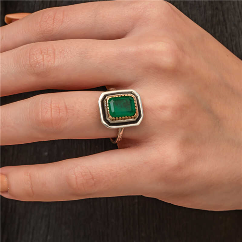 Silver Green Stone Authentic Women's Ring The green stone authentic ring brings together traditional and modern styles, adding an iconic touch to your style. It harmonizes perfectly with both bohemian and classic styles. It is a perfect option as a birthday gift, Valentine's Day gift or a gift for mothers on special occasions. The silver green authentic ring is made of 925 sterling silver. Rhodium plated on the silver. Rhodium plated silver authentic earrings preserve their shine for a long time and oxidation is delayed. Like all women's earrings, silver authentic women's earrings are also produced by hand. Due to silver and precious stones, there may be a ± 10% deviation in the average product weight. Width: 1.50 cm Length: 1.50 cm Average Weight: 5.20 gr.