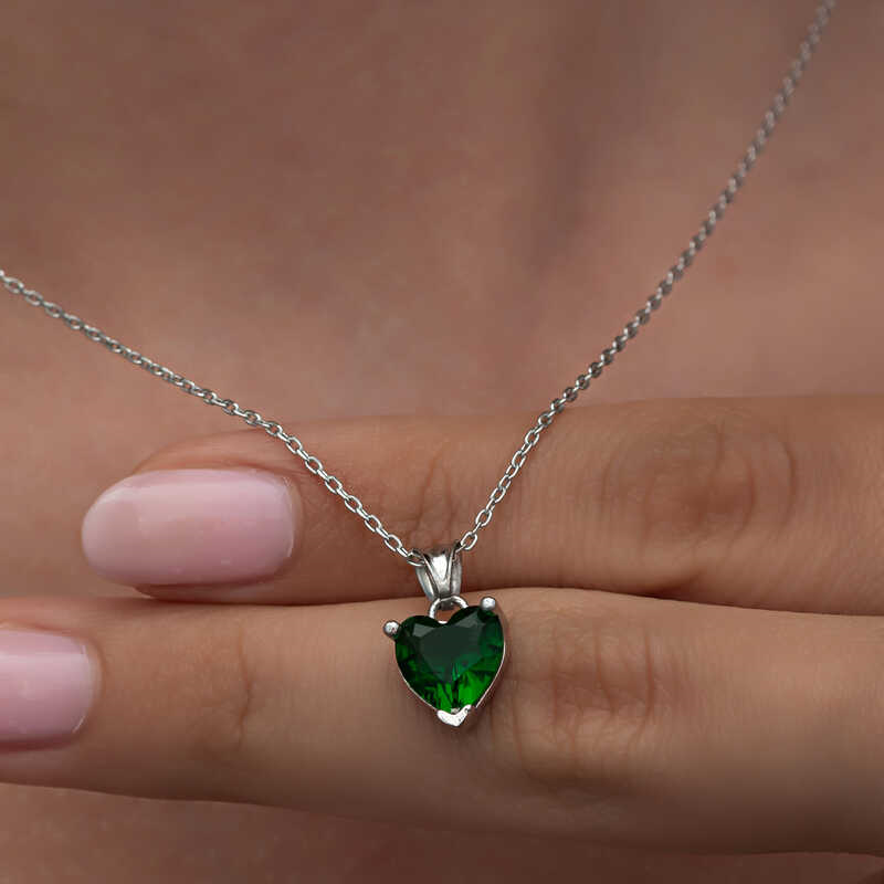 Silver Green Stone Heart Women's Necklace Let your love come to life on the skin of the woman you love with the heart necklace model that expresses love with its heart pattern. Adorn your loved one with love with this heart women's necklace that young lovers and those who feel young can choose on special occasions. A heart patterned necklace that your loved ones will enjoy wearing as much as you do will be one of the best gifts for your loved one. The heart women's necklace is made of 925 sterling silver. Rhodium plated silver. Rhodium plated silver women's heart necklaces preserve their shine for a long time and oxidation is delayed. The stone on the necklace is zircon. The average silver chain length is 50 cm. Like all women's necklaces, the silver green stone heart women's necklace is also handmade. Due to silver and precious stones, there may be ± 10% deviation in the average product weight. Necklace Width: 0.90 cm Necklace Length: 1.10 cm Chain Length: 50 cm Average Weight: 2.90 gr