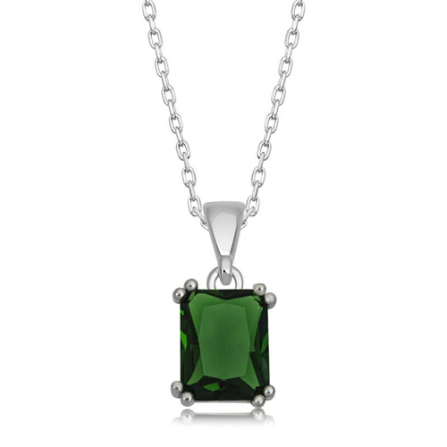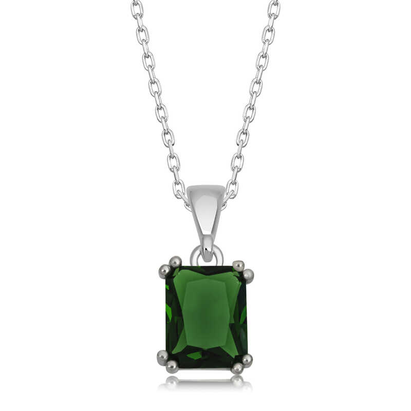 Silver Green Zircon Baguette Stone Women's Necklace You will love using this necklace, which reminds me of stars with its sparkling stone, for everyday life, special occasions and nights. The timeless green crystal square stone silver necklace, which appeals to all women who want to achieve a stylish look, is waiting for you. The green square stone necklace model is made of 925 sterling silver. Rhodium plated silver. Rhodium plated silver necklace models preserve their shine for a long time and delay oxidation. The stone on it is zircon. The average chain length is 45 cm. All of our products are handmade. Due to silver and precious stones, there may be a ± 10% deviation in the average product weight. Width: 0.90 cm Length: 2.10 cm Average Weight: 4.40 gr.
